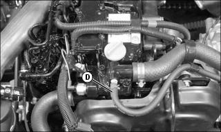 7. Connect air bleed hose (D) at thermostat housing on engine.