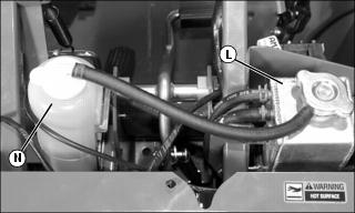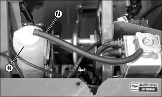 6. Check coolant level in recovery tank (N), and ensure that level is at or above the low mark. Add coolant if necessary.