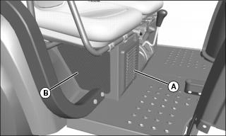 4. Release latches (A) and remove air cleaner canister cover (B).