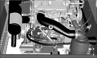 • Hose (B) goes from engine to side radiator.