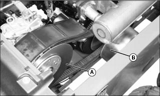 3. Route the belt over pulley (A) of the driven clutch. Rotating the driven pulley will aid in removing the belt.