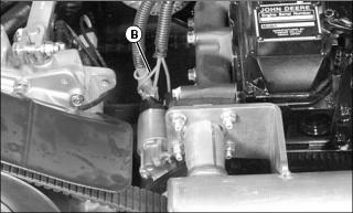IMPORTANT: Avoid damage! Electric charge from booster battery can damage machine components. Do not install negative booster cable to machine frame. Install only to the engine block.
