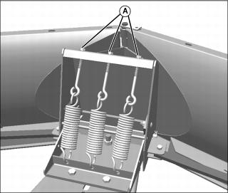 3. Loosen locknut (A) on each eyebolt to reduce spring tension.