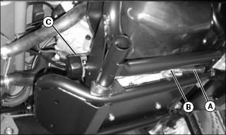8. Check radiator hose (C) between intermediate tubes and radiator for damage or cracking. Replace if necessary.