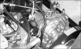 7. Loosen engine block drain screw (C) on left side of engine. Allow coolant to drain into a drain pan.