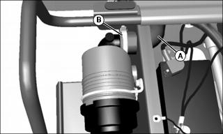 3. Remove screw (A) securing spark arrestor (B) to muffler exhaust pipe. Retain the screw.