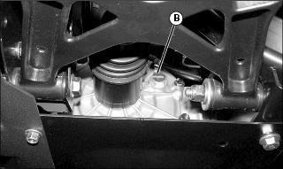 4. Remove fill plug (B) located on left side of 4WD front differential.