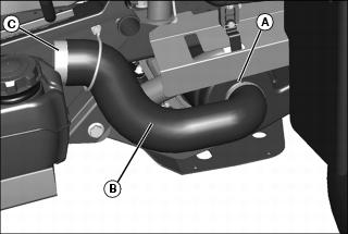 5. If debris is found inside exhaust port, loosen clamp (C) and remove air inlet hose (D).