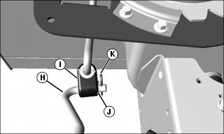 3. Insert end of chute handle rod (H) into black plastic U-joint (I) at end of chute rotation rod, and secure with an M10.5 flat washer (J) and M2.5 spring locking pin (K).