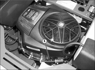 The Briggs and Stratton single and twin cylinder engines incorporate a removable guard over the rotating flywheel cover at the top of the engine. The guard should be removed to check for and remove any debris daily in conjuction with checking engine oil level.
