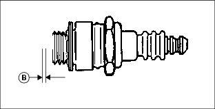 7. Check plug gap (B) with a wire feeler gauge. To change gap, move the outer electrode. Gap must be 0.75 mm (0.030 in.).