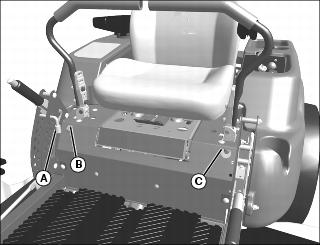 • If machine tracks to the right, turn tracking bolt (C) clockwise.