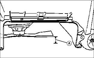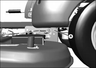 5. Lower mower lift lever, and install pin and spring clip (A) onto each side of rear mower bracket.