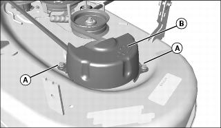 1. Loosen eight bolts (A), and remove right and left belt covers (B).