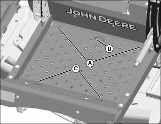 • Z200 series 42 and 48 inch mower decks: Loosen and remove nut (A), washer (B), and blade (C).