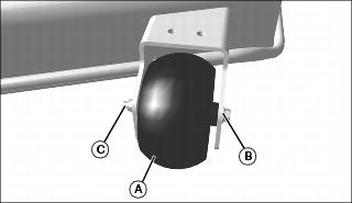 1. Install two front gage wheels (A) onto deck using bolt (B) and nut (C).