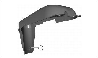 2. Locate embossed cut line (E) on belt shield. Cut along line and remove section.