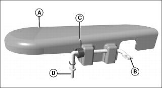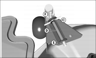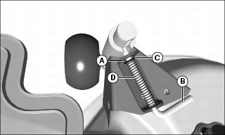 2. Remove adjuster pin (B), washer (C) and compression spring (D). Keep washer and spring.