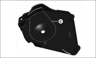 3. Locate embossed cutout line (C) on bottom of deck belt shield.