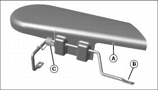 1. Assemble blower belt shield (A), wire form support shield rod (B), and hinge spring (C).