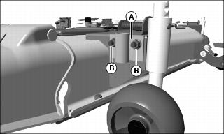 1. Remove spring pin (A) from right rear gage wheel adjuster pin (B).