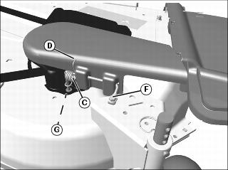 • Install rod end through mower belt shield and secure beneath mower deck with M6 Washer and flange locknut (G).