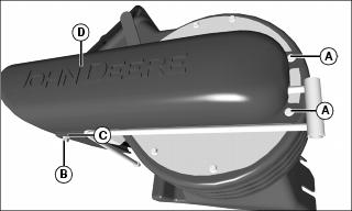1. Remove two bolts (A), nut (B) and washer (C) attaching belt shield (D) to POWER FLOW.