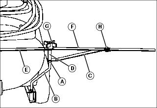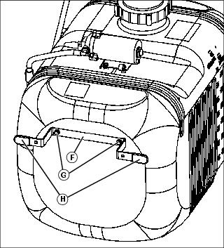 3. Install hose tender bracket (F) using two 5/16 x 5/8 in. flange bolts (G). Install plastic covers (H).