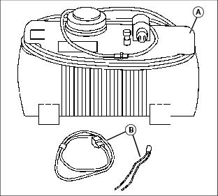 2. Place tank and frame assembly, with tank frame (A) on top, onto top of shipping box (B) for installing hitch frame.