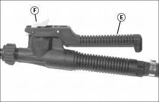 5. Push lock (F) forward to lock handle in ON position.