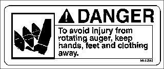 To avoid injury from rotating auger, keep hands, feet and clothing away.