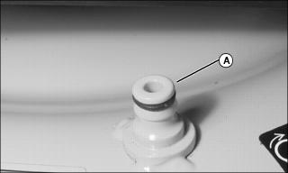 2. Attach a garden hose with quick-coupler to wash port (A) on either side of mower deck.