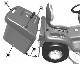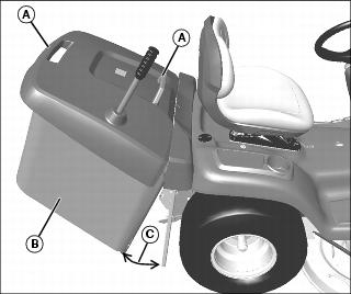 2. Open grass collector, and use two handles (A) to raise grass collector (B) at an approximately 20? angle (C). Remove grass collector from support brackets.
