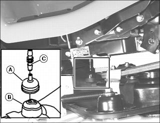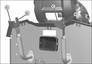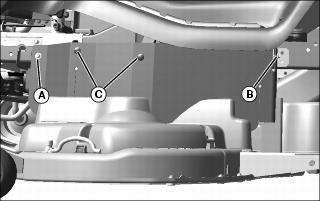 3. Remove two push fasteners (C) from the shield and remove the shield from the machine.