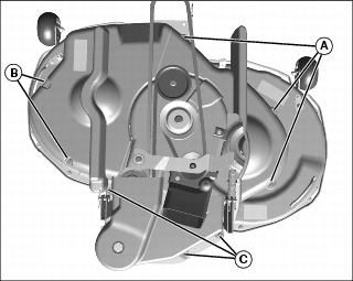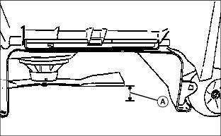 3. Adjust mower cutting height to deck removal position (lowest position) (A).