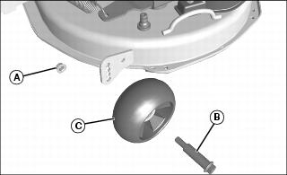 4. Set mower cutting height knob (C) to the 2.75 deck leveling position and lower deck against stop.