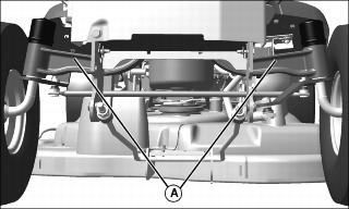 7. Fasten front of machine at both sides of the axle at points (A) to trailer with heavy-duty straps, chains, or cables. Straps must be directed down and outward from machine.