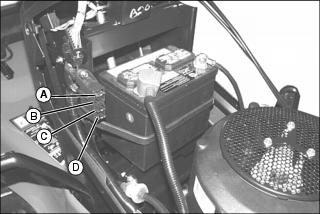 Lors de la pose de la batterie, s'assurer que les cosses sont face à l'avant de la machine.