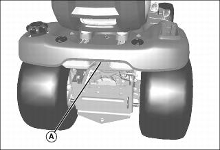 7. Arrimer l'avant de la machine des deux côtés de l'essieu aux points (A) à la remorque avec des sangles, des chaînes ou des câbles robustes. Les sangles doivent toutes être dirigées vers le bas et vers l'extérieur de la machine.