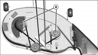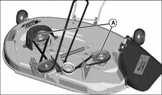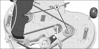 • Lubricate two mower spindle grease fittings (A) with two pumps of grease at specified interval.