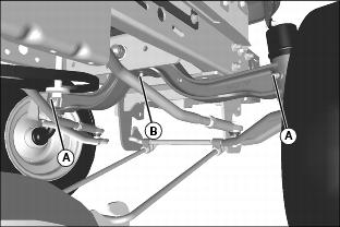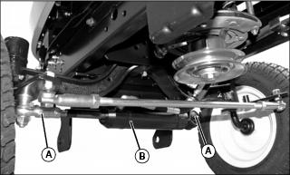 3. Lubricate front axle center pivot grease fitting (B) with one or two pumps of general all-purpose grease.