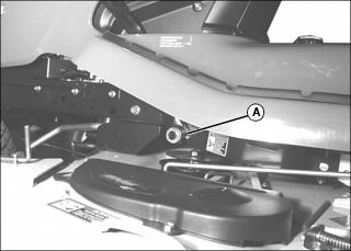 1. Lubricate grease fitting (A) for lift pedal with enough grease to flush out dirt.