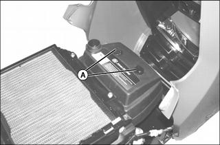 4. Loosen and remove radiator cap (A) slowly to release all pressure.