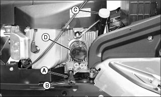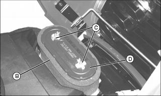 6. Remove foam precleaner (B), wing nuts (C), and paper element (D). Inspect paper element.