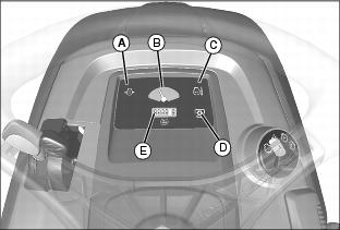 3. The label for the cutting height knob is located on the console of the machine. This label shows deck leveling position (A) and location of deck leveling adjustment points (B). The location of adjustment points will vary slightly between decks: