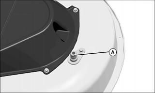 2. Attach a garden hose with quick-coupler to wash port (A) on the mower deck.