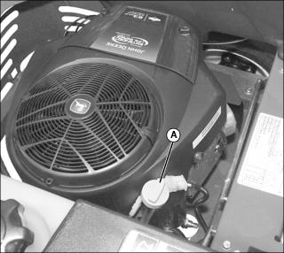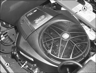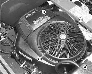 1. Loosen screw (A) on rotating screen guard (B) at top of engine.