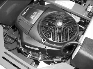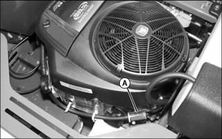 The engine incorporates a removable guard over the rotating flywheel cover at the top of the engine. The guard should be removed to check for and remove any debris daily in conjunction with checking engine oil level.