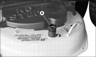 2. Attach a garden hose with quick-coupler to wash port (A) on the mower deck.