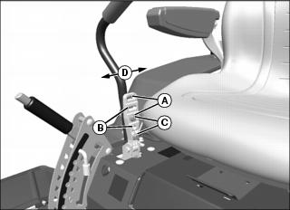 3. You can also adjust motion control levers slightly forward or rearward (D) within slotted holes.